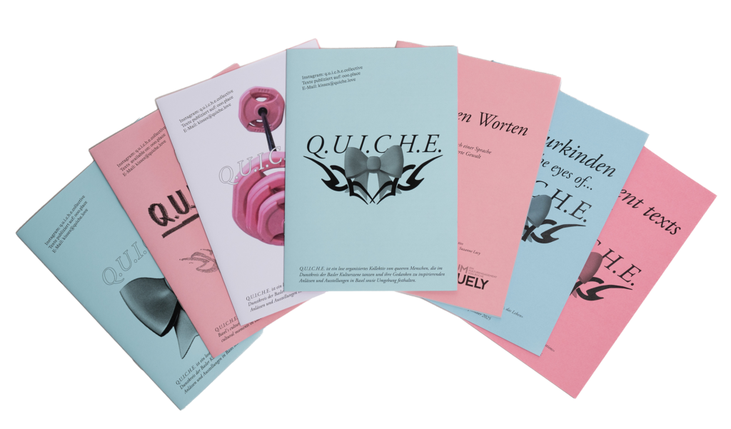 Q.U.I.C.H.E. ist ein queeres Schreibkollektiv aus Basel, das seit รผber zwei Jahren Texte, Publikationen, Podcasts und Lesungen bรคckt. Auf dieser Seite findet ihr viele unserer Texte, Podcasts und Projekte. Folgt uns auf Instagram und abonniert unseren Newsletter.